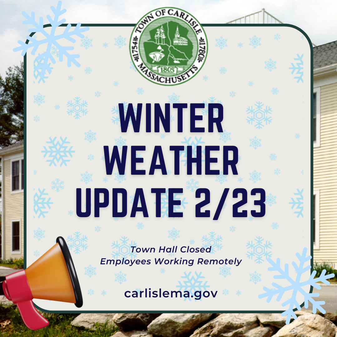 In anticipation of the upcoming winter storm, Carlisle Town Hall will be closed to the public on Monday, February 23.